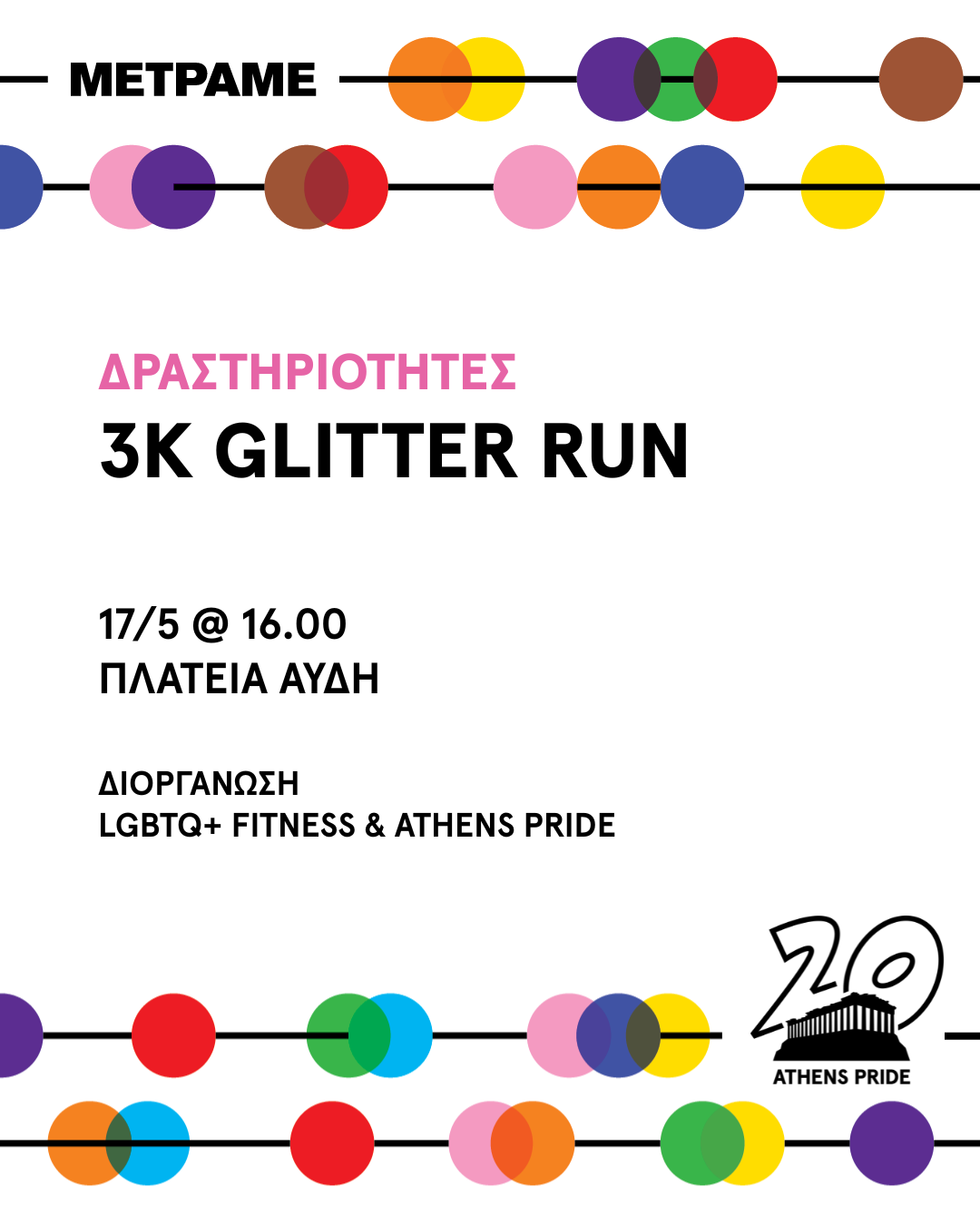 Ο πρώτος inclusive αγώνας δρόμου του Athens Pride είναι γεγονός! Τρέχουμε 3K στα πέριξ της Πλατείας Αυδή για την ορατότητα, τη σωματική ενδυνάμωση και την αποδοχή κάθε ταυτότητας. Ο αγώνας είναι για όλα τα άτομα: ανεξαρτήτως φύλου, σεξουαλικού προσανατολισμού, φυσικής κατάστασης ή εμπειρίας.