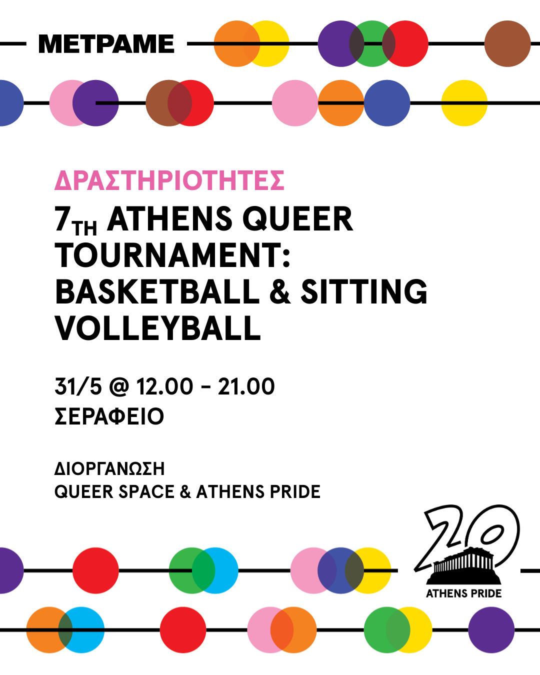7th Athens Queer Tournament: Basketball & Sitting Volleyball ΜάιοςΜάι 31 2025 12:00 - 21:00Εχελιδών &, Πειραιώς 144, Αθήνα, Αθήνα